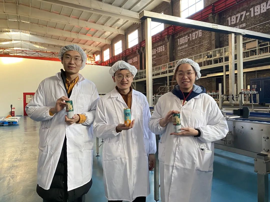 杞橙、天生桂杞和打麥三款飲料是一輕院食品日化所由市場(chǎng)調(diào)研、原料嚴(yán)選、配方研發(fā)、生產(chǎn)工藝確認(rèn)到中試生產(chǎn),每個(gè)環(huán)節(jié)都親自把關(guān),一點(diǎn)一滴腳踏實(shí)地干出來(lái)的心血產(chǎn)品。在這個(gè)過(guò)程中,研發(fā)人員同時(shí)肩負(fù)起了研發(fā)、品控、工藝,甚至市場(chǎng)等多方位角色,在每個(gè)角色中都親力親為,積極學(xué)習(xí)。在北冰洋昌平區(qū)的全新熱灌裝生產(chǎn)線上,他們與北冰洋的研發(fā)、品控和生產(chǎn)工人一起,逐步摸索生產(chǎn)關(guān)鍵工藝要點(diǎn),嚴(yán)格控制產(chǎn)品質(zhì)量指標(biāo),實(shí)現(xiàn)了從果汁殺菌、調(diào)配、灌裝、滴氮保護(hù)、滅菌到包裝封箱的全流程生產(chǎn)工藝確定。